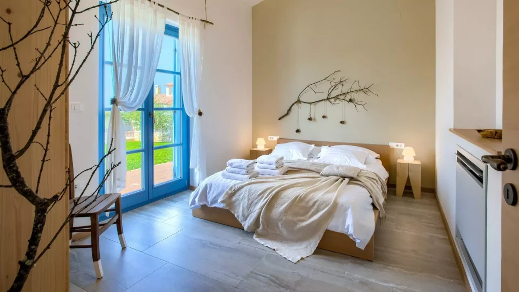 Experience the charm of our Pool Suite featuring a comfortable double bed and a direct access to the pool terrace overlooking the scenic views of Istria.