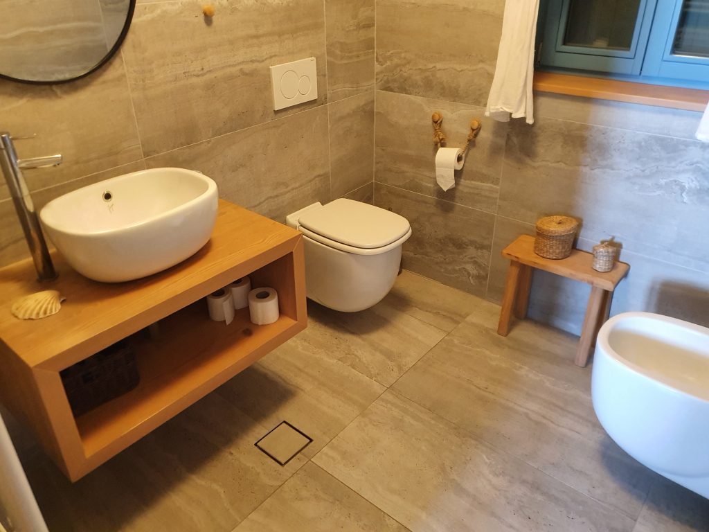 Enjoy the bathroom on the ground floor equipped with designer ceramics, bidet and walk-in shower